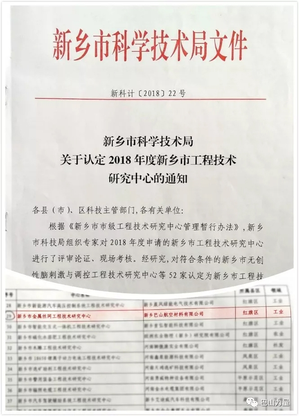 2018年9月,經(jīng)過評審論證、專家現(xiàn)場審查,巴山公司研發(fā)中心通過“新鄉(xiāng)市工程技術(shù)研究中心”認定。這是巴山公司在項目研發(fā)、產(chǎn)品試驗、研發(fā)團隊建設(shè)等方面具備較高水平的又一次證明。
